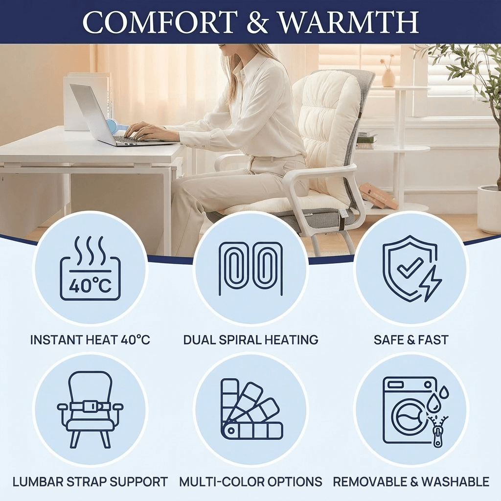 Crafted from a premium, short-pile fleece that feels soft and warm to the touch instantly. The practical back buckle ensures a secure, non-slip fit on any chair. Best of all, the heating core is easily removable, making the plush cover machine-washable for ultimate convenience and hygiene.