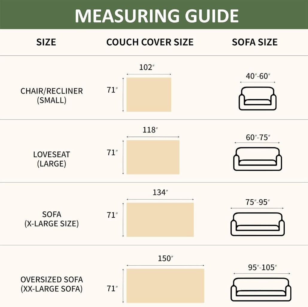 Refer to the size matching chart below to select the most suitable size based on your measurements. We recommend choosing a size that is 1-2 inches larger than your sofa's dimensions for better coverage and a more secure fit.