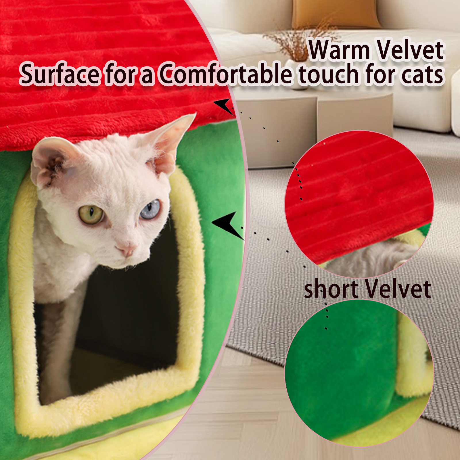 ✔ [Use Tips]When you first receive the cat beds, they are unevenly shaped, you need to pat the cat bed's cotton to restore the original shape after opening.