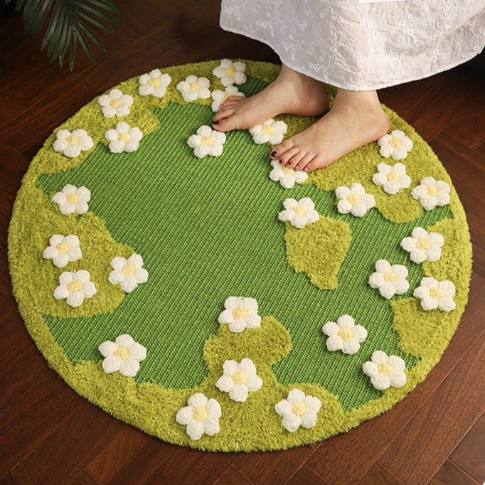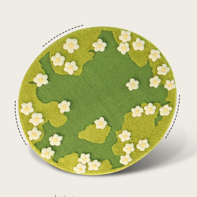 ✔Design: Lush Green Grass & White Floral Pattern (Decorative, Nature-Inspired)