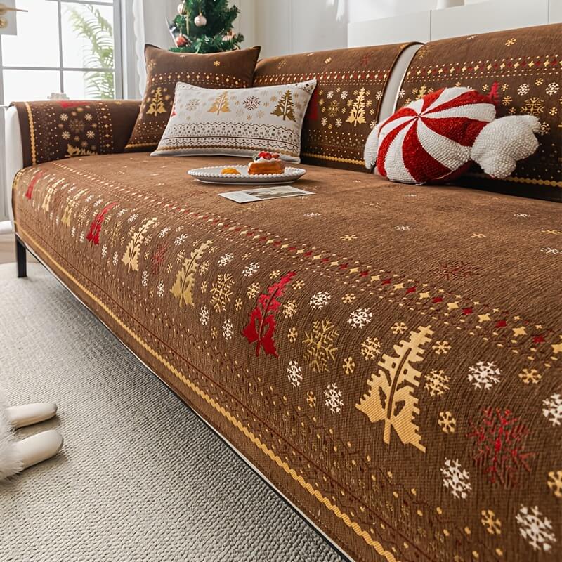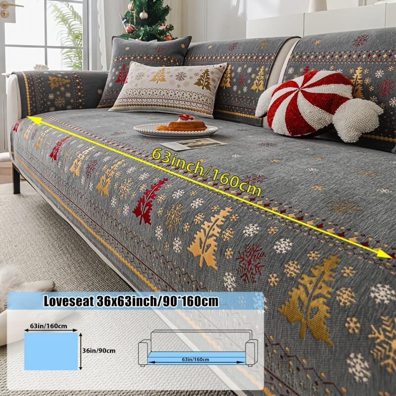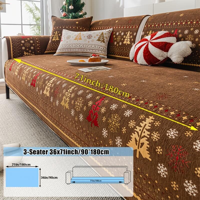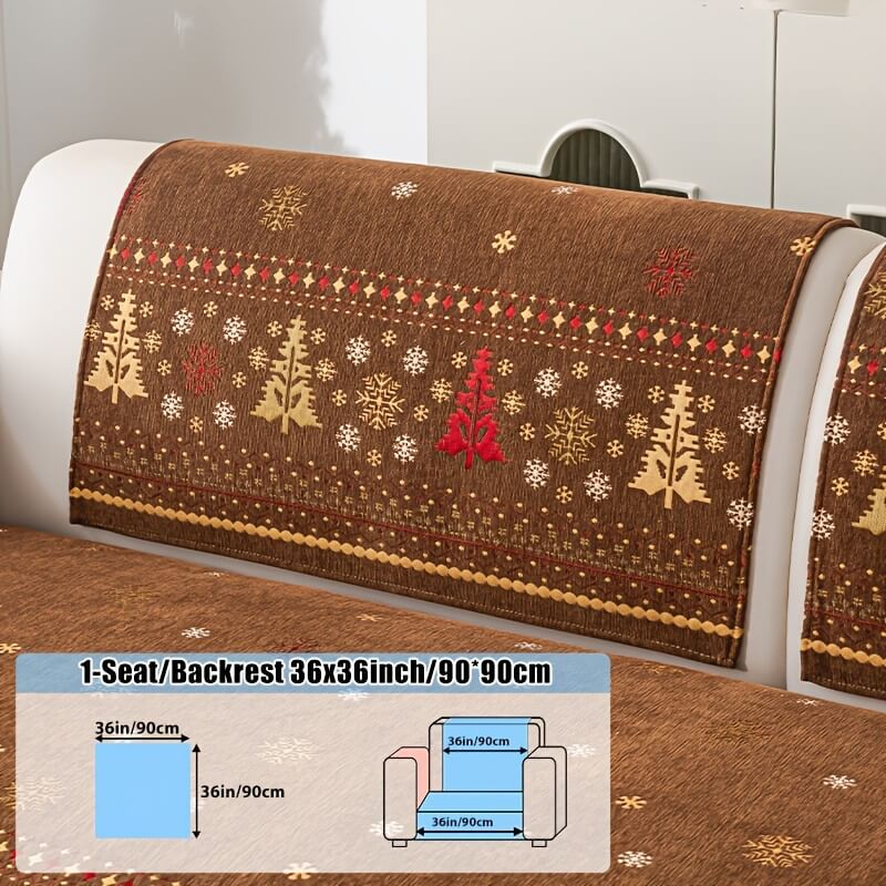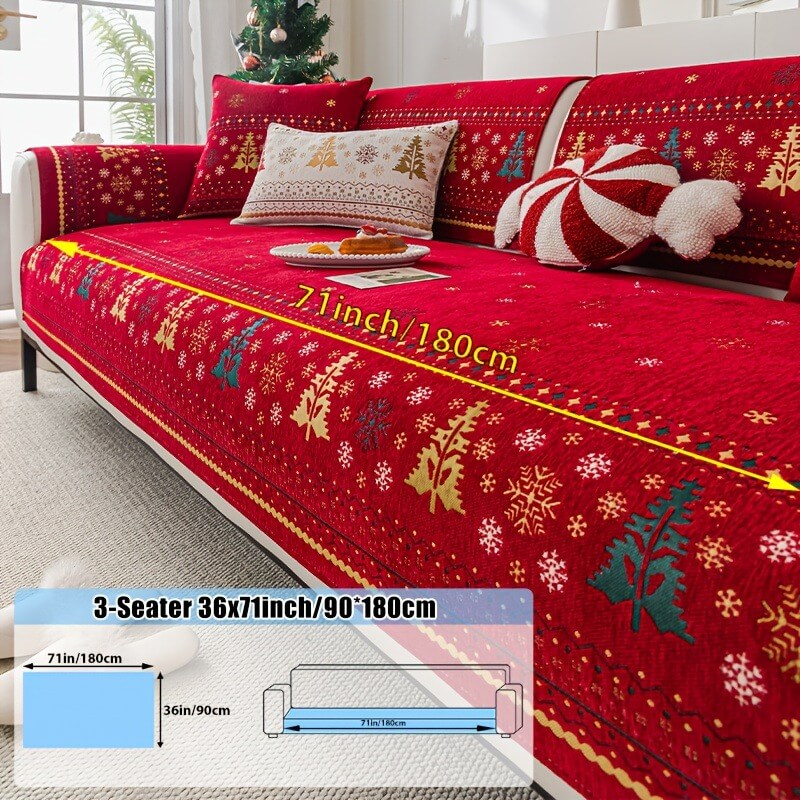 Celebrate the holidays in style with our exquisitely crafted Christmas Tree Embroidery Chenille Sofa Cover. Designed to bring instant festive charm to your living space, this premium sofa cover features beautiful embroidered Christmas trees and delicate snowflakes that capture the magic of the season. Made from luxurious chenille fabric with practical anti-slip technology, it's the perfect blend of holiday elegance and everyday functionality for homes with pets and children.