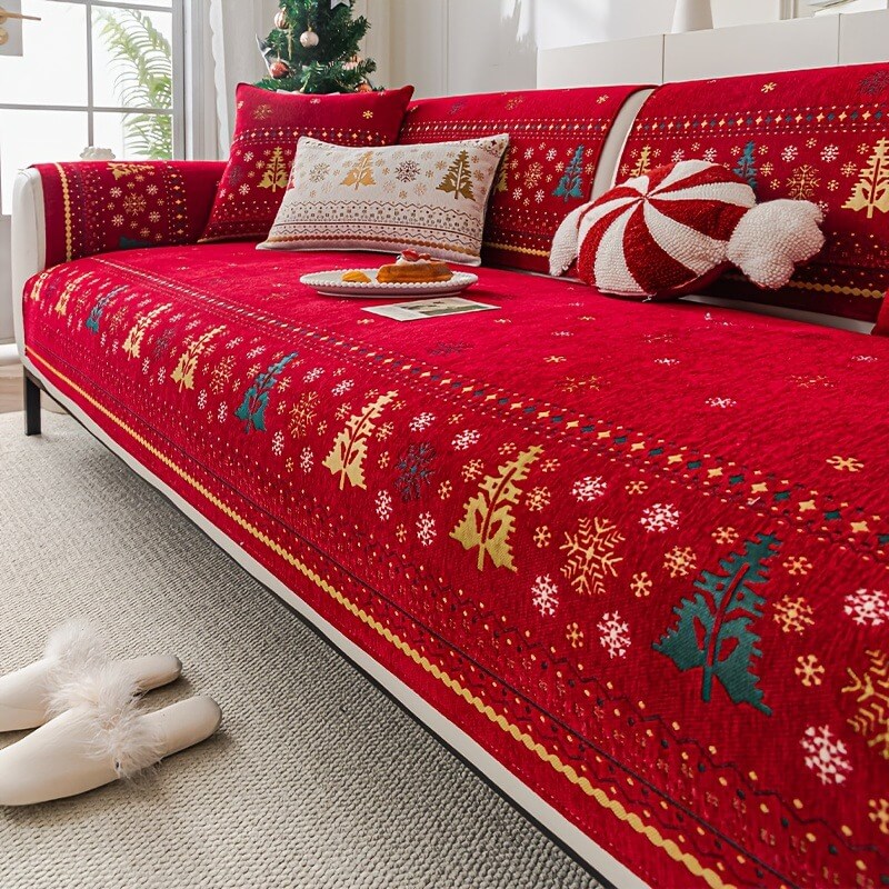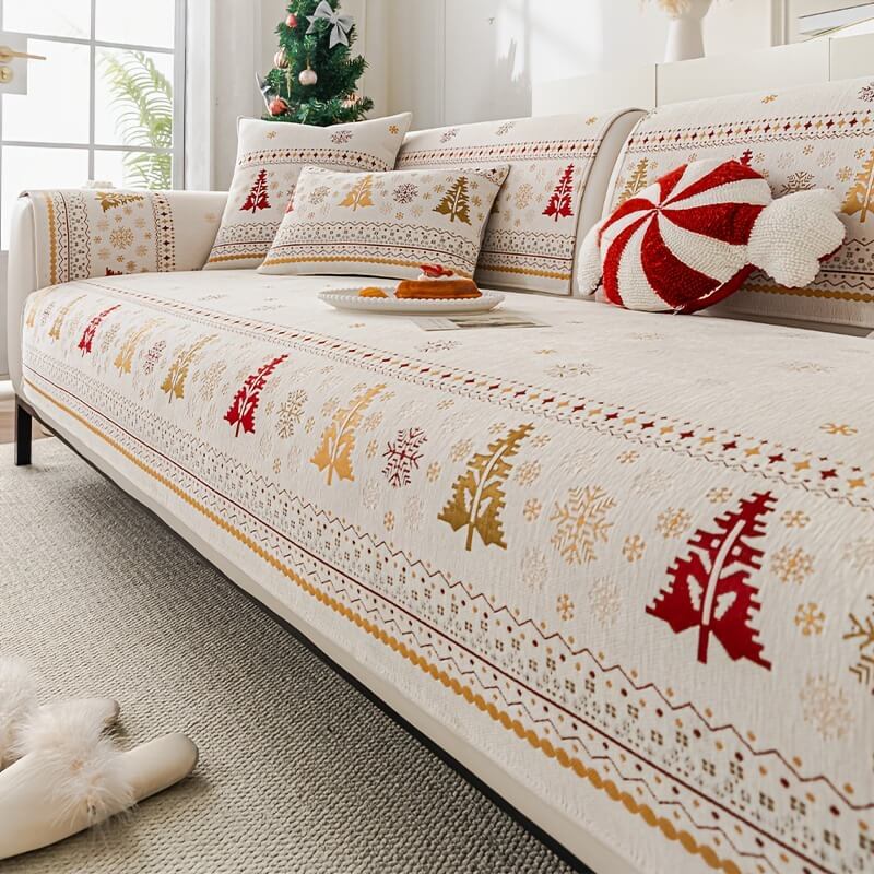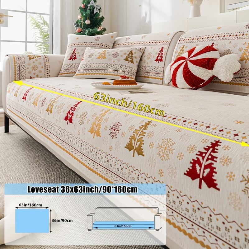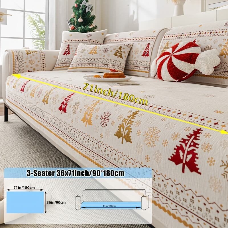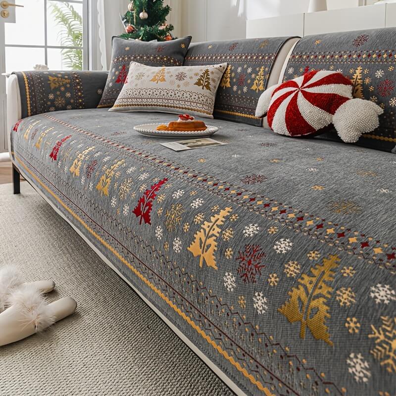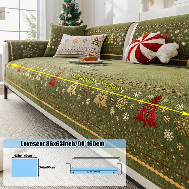 Celebrate the holidays in style with our exquisitely crafted Christmas Tree Embroidery Chenille Sofa Cover. Designed to bring instant festive charm to your living space, this premium sofa cover features beautiful embroidered Christmas trees and delicate snowflakes that capture the magic of the season. Made from luxurious chenille fabric with practical anti-slip technology, it's the perfect blend of holiday elegance and everyday functionality for homes with pets and children.
