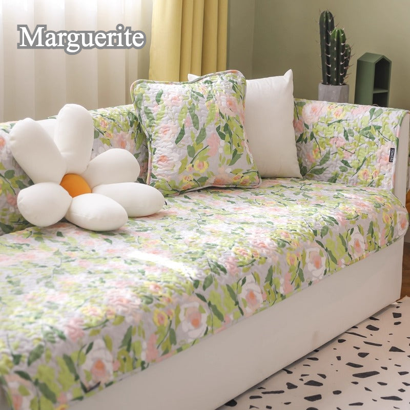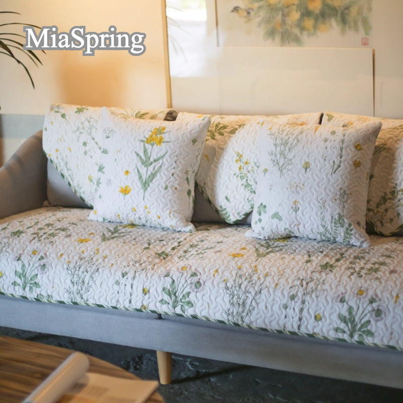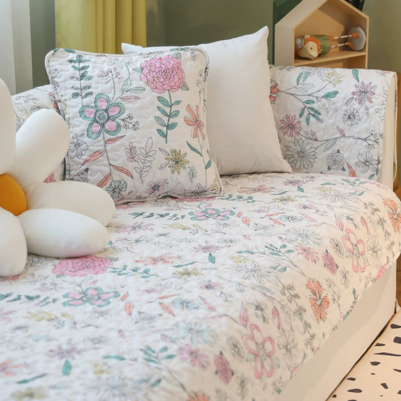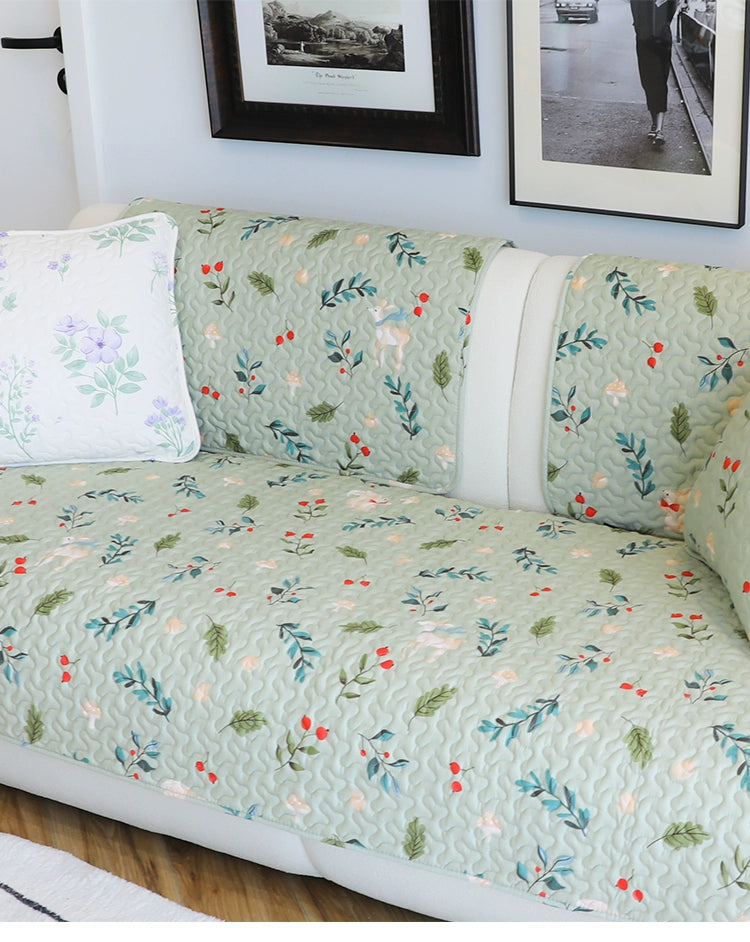 Add rustic charm to your living room with this 100% cotton floral sofa cover! Featuring a non-slip base and polyester filling, it protects leather/fabric couches from scratches, spills, and wear. Reversible design + machine-washable fabric for easy care. Perfect for sectional, loveseat, or armchair use!