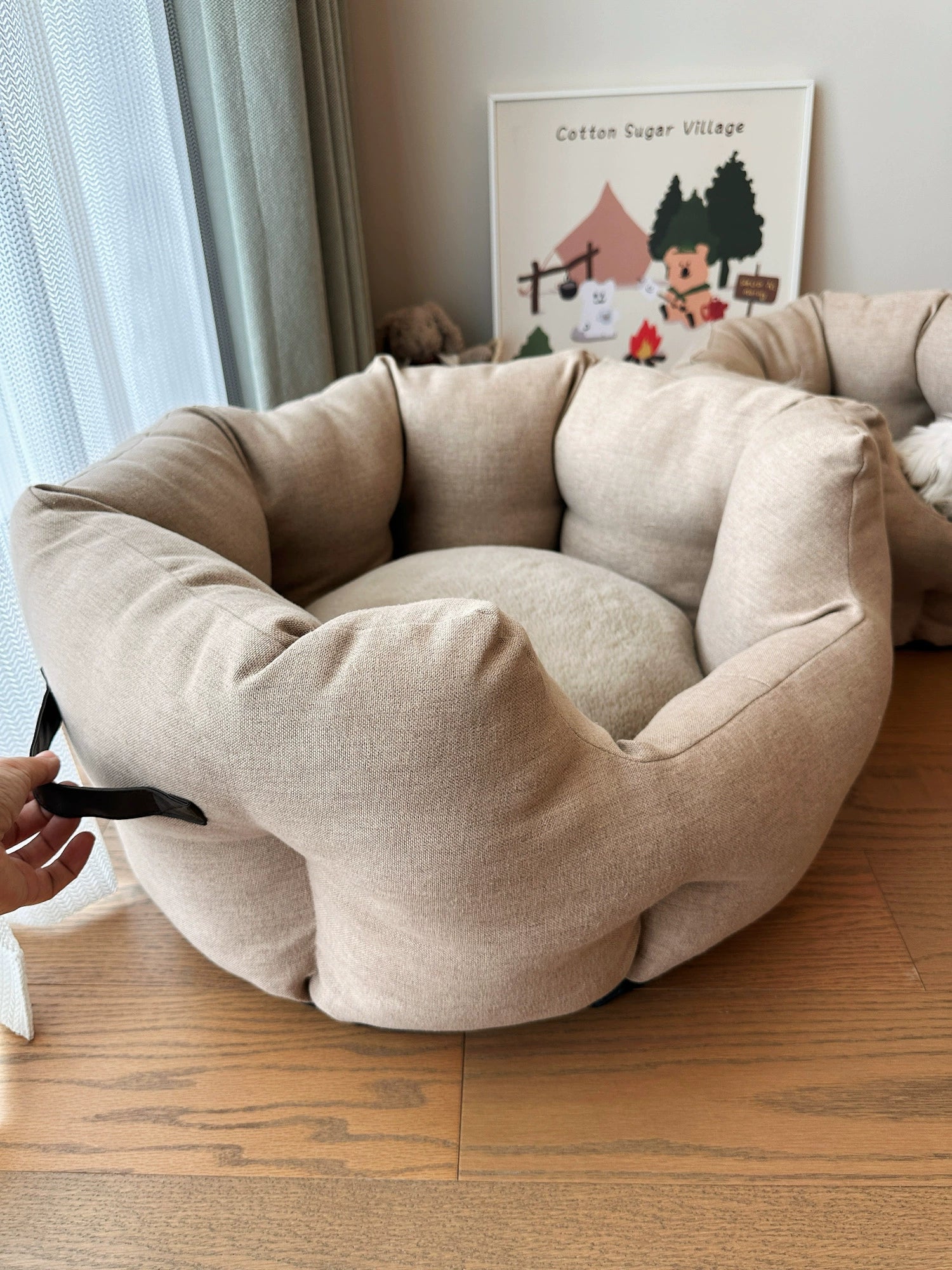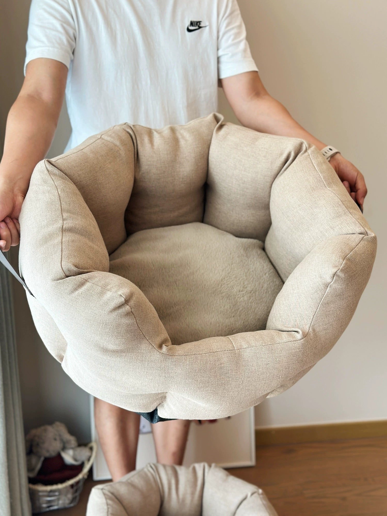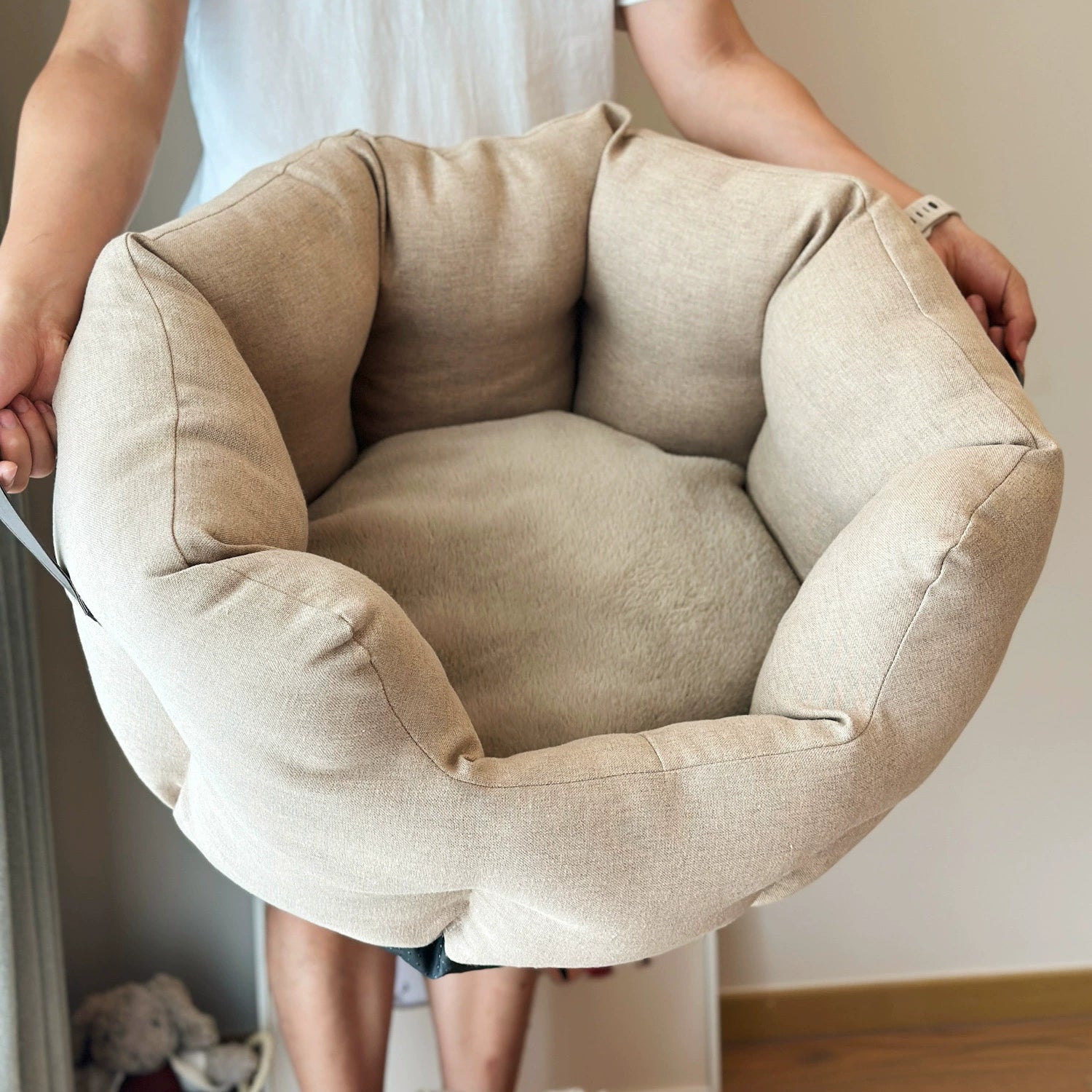 Deep Sleep Pet Bed - Portable Plush Dog & Cat Bed with Handle, Reversible Sofa-Style Cushion