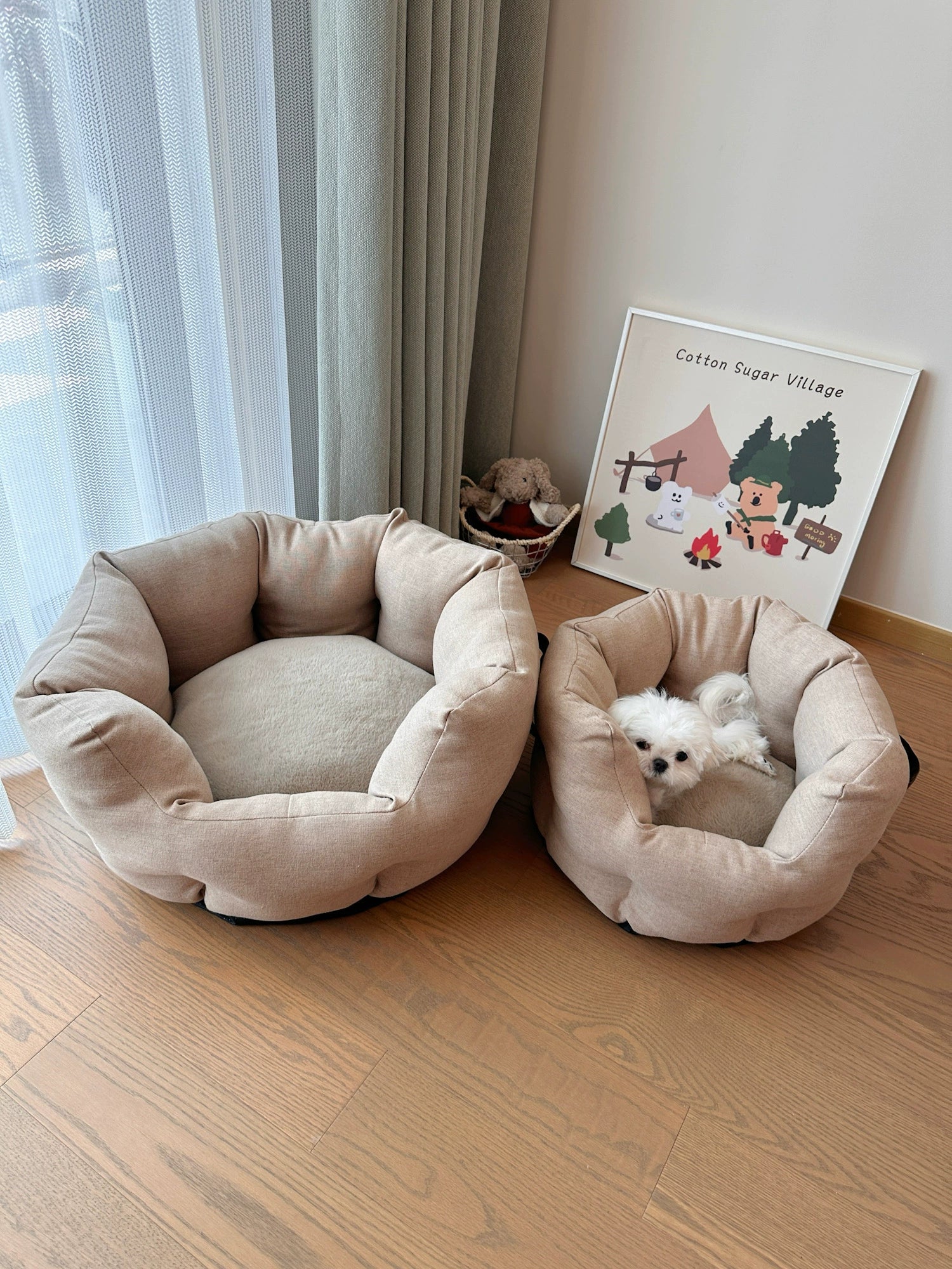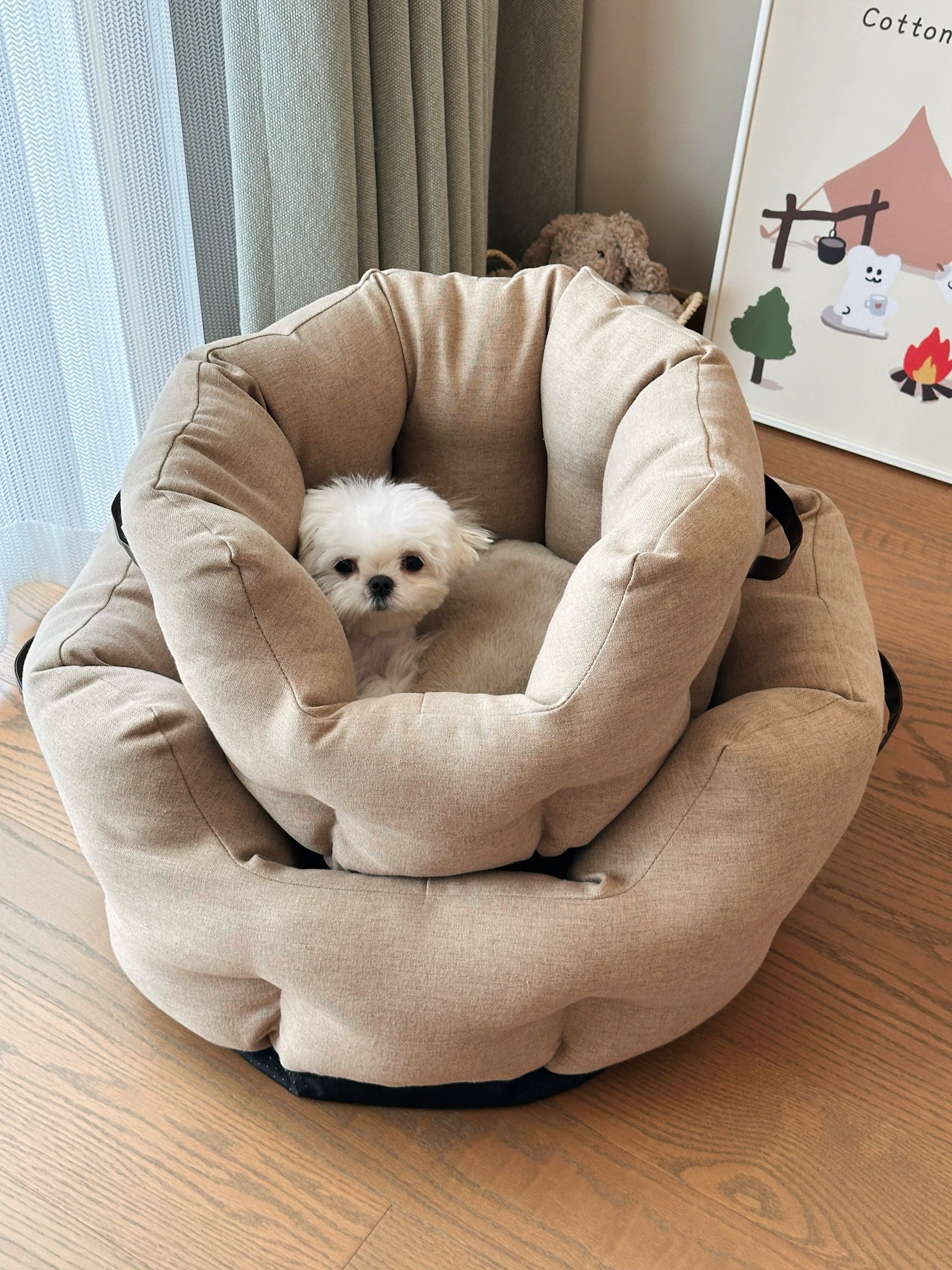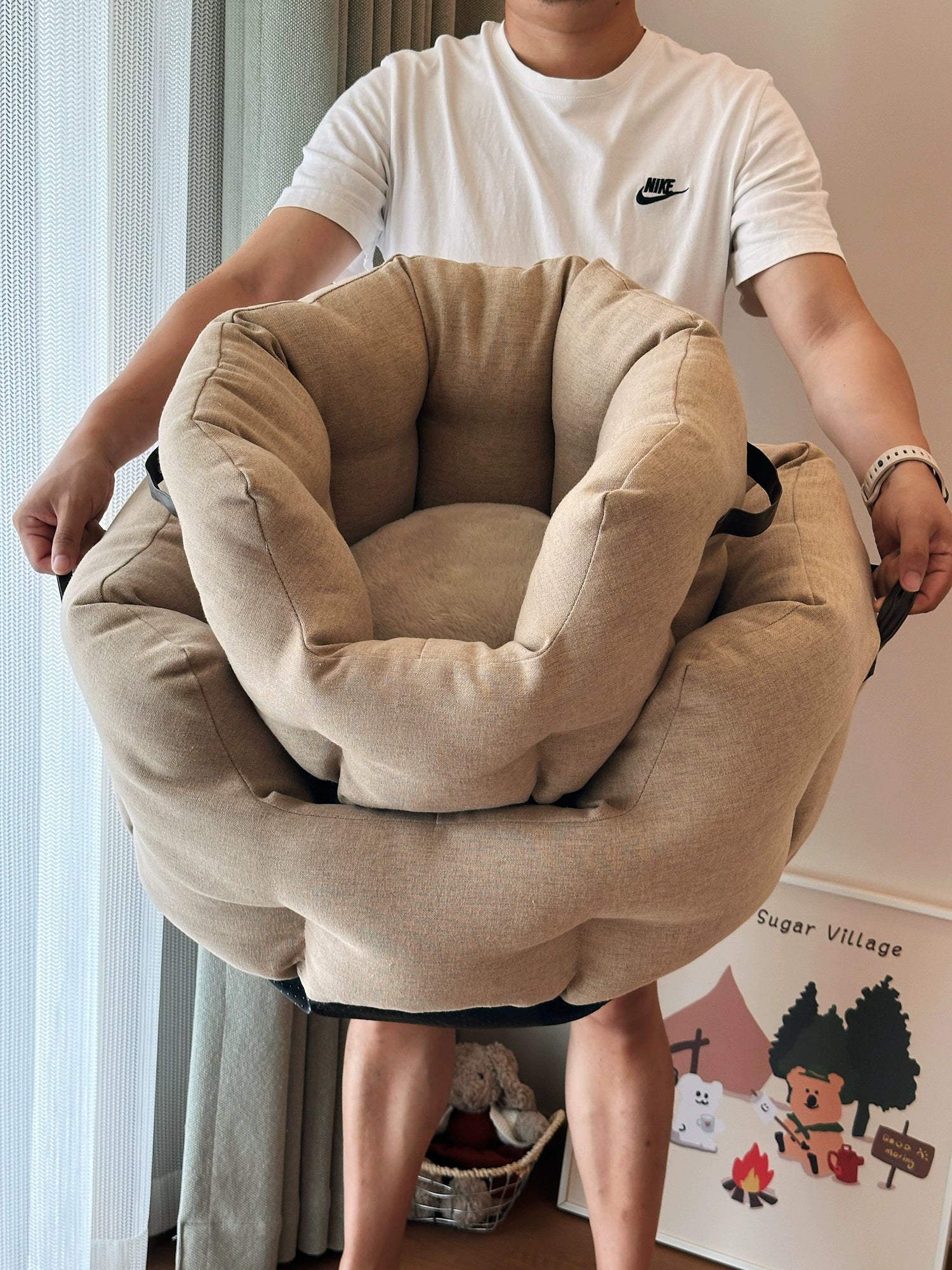 Deep Sleep Pet Bed - Portable Plush Dog & Cat Bed with Handle, Reversible Sofa-Style Cushion