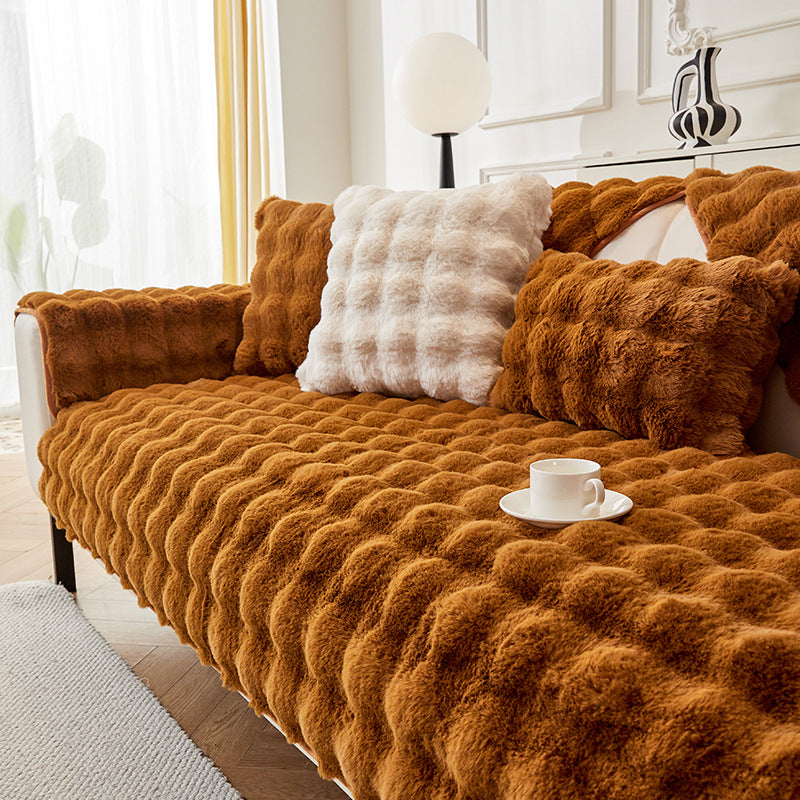 Experience cozy winters with our Pawvot Faux Fur Sofa Cushion. Non-slip, ultra-soft, and machine washable. Protect your leather couch in style. Shop now for free shipping!