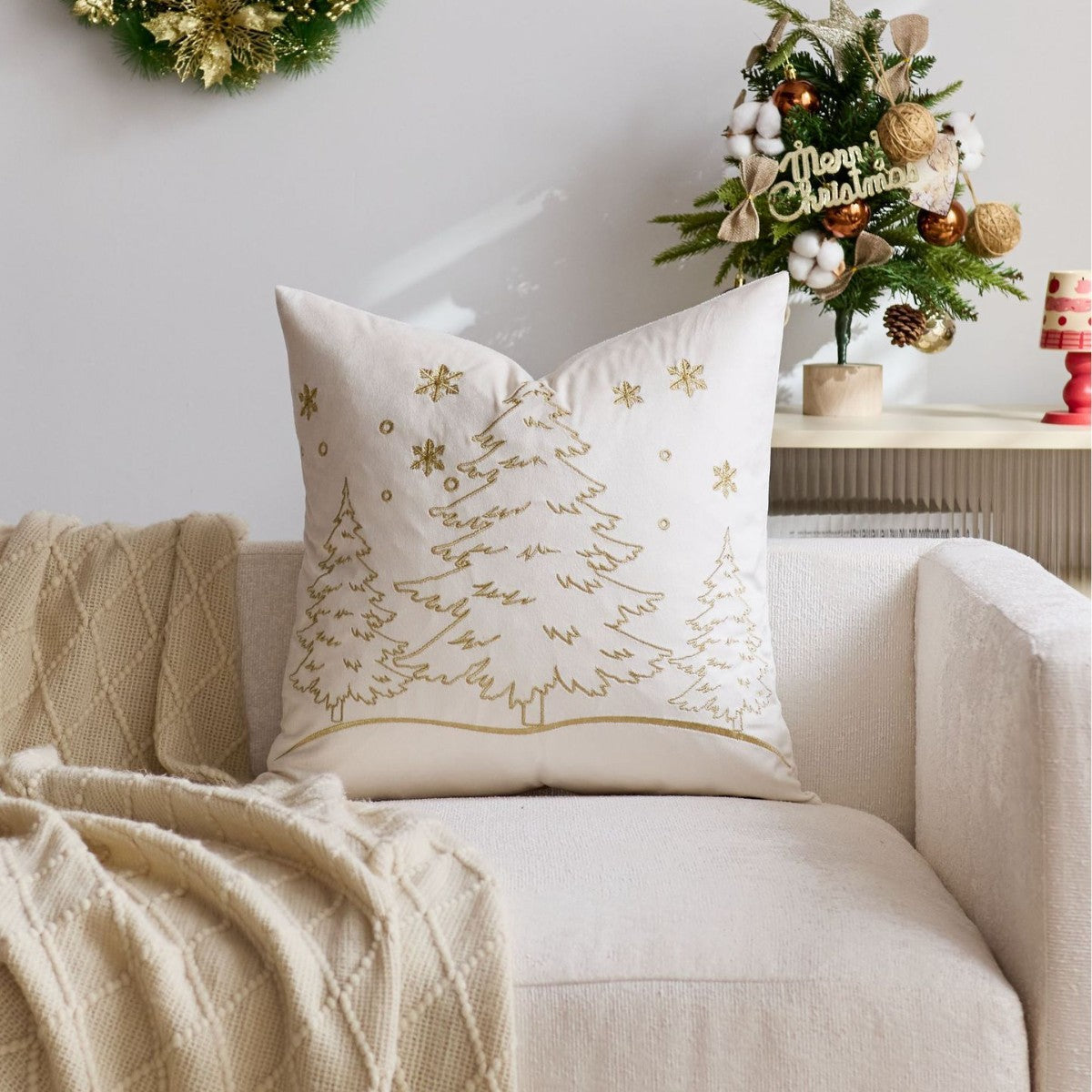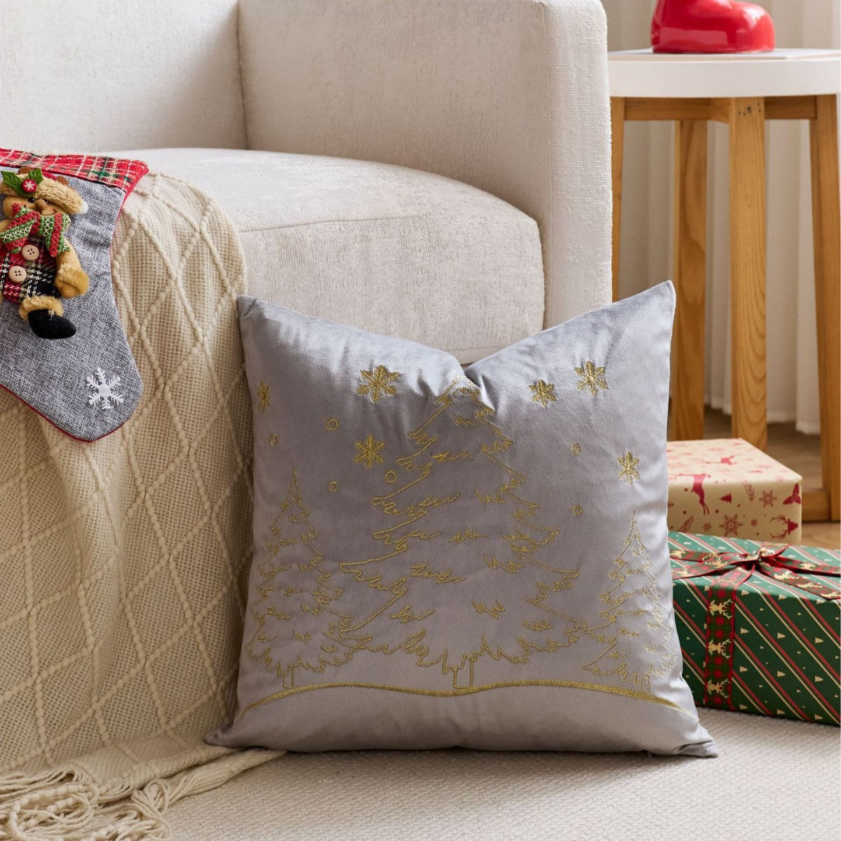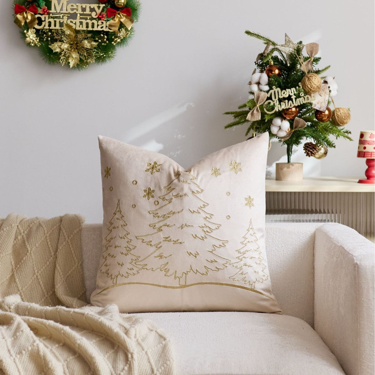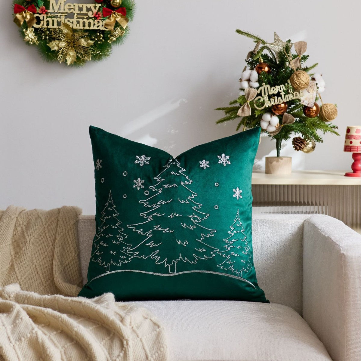 Discover the perfect blend of modern minimalism and festive charm with our Nordic Christmas pillow cover. Featuring a beautifully embroidered Christmas tree and delicate snowflake pattern, this cushion cover adds a touch of sophisticated, understated luxury to your living room or bedroom. It's the ideal accent piece for anyone looking to create a cozy, stylish, and welcoming atmosphere during the holiday season and beyond.