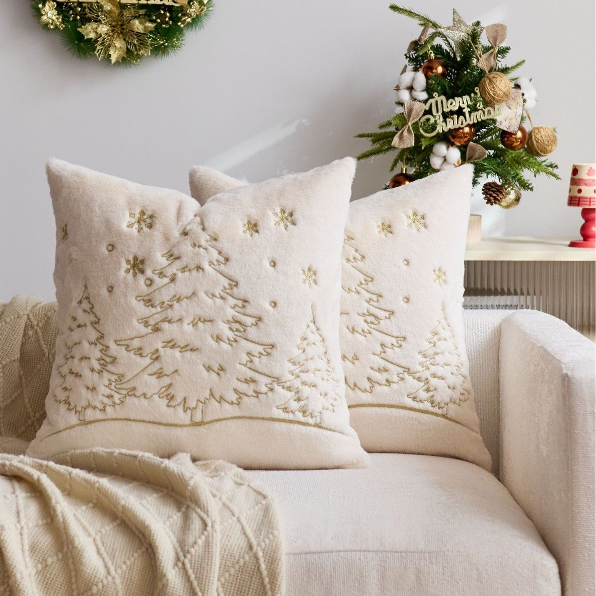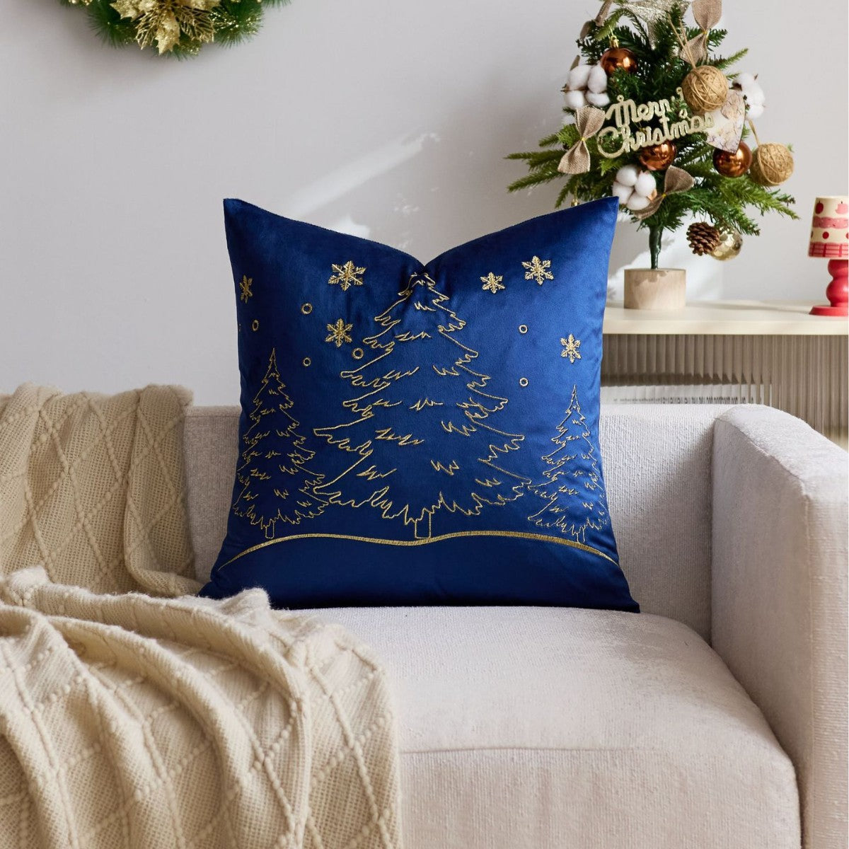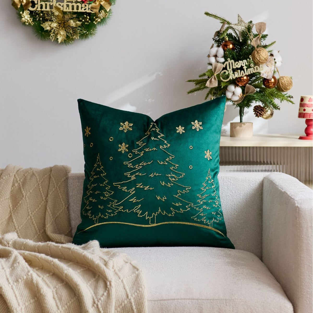 Exquisite Embroidery Design: Features high-precision machine embroidery for the Christmas tree and snowflake motifs. The raised texture adds a luxurious, tactile dimension and ensures the design is durable and won't fade.