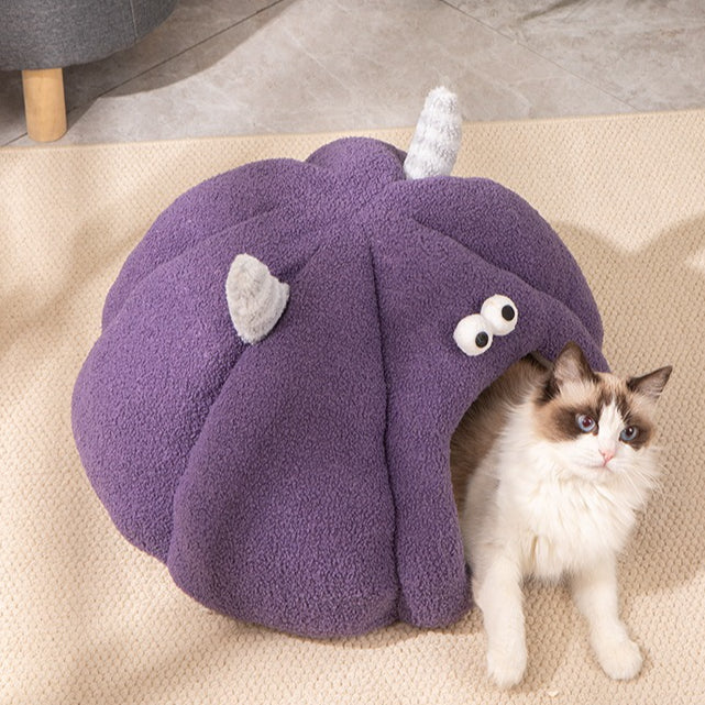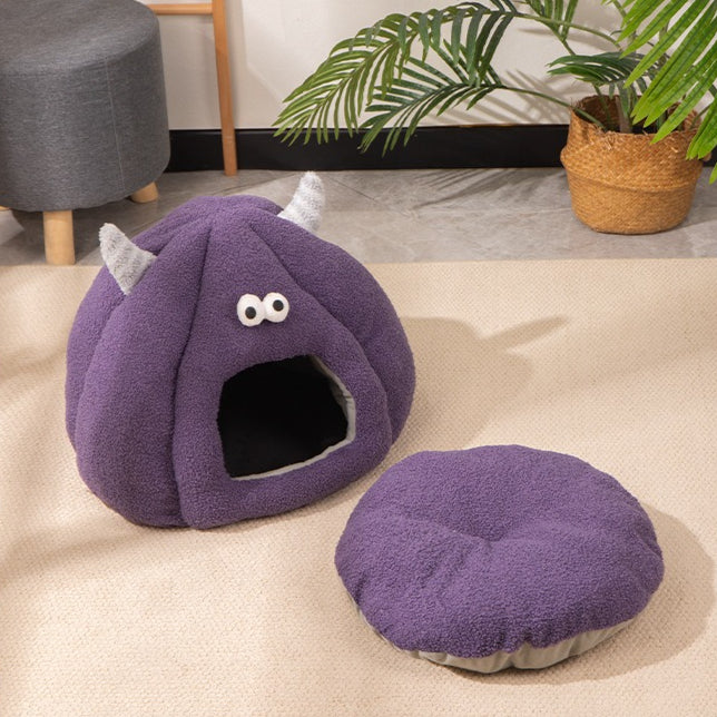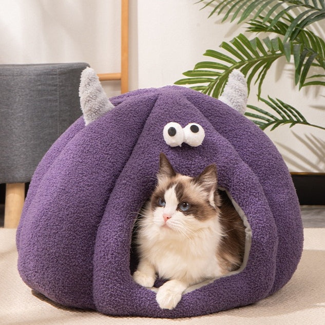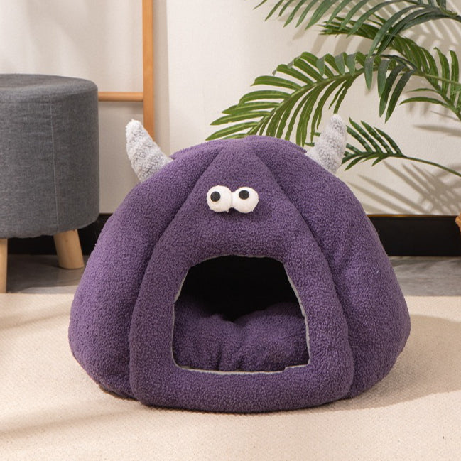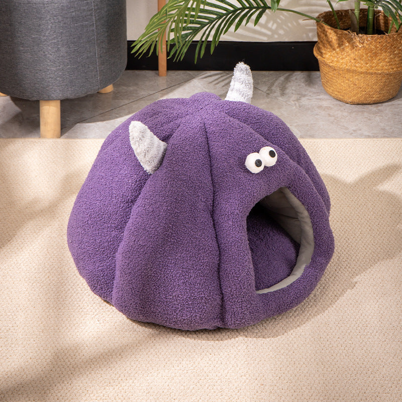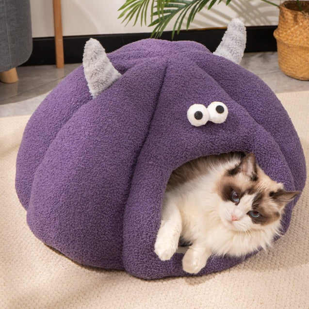 Give your furry friend their own magical hideaway! This Enclosed Winter Dog Bed combines ultimate comfort, security, and playful style. Designed to look like an adorable monster with charming devil horns and deep purple plush fabric, it’s more than a bed—it’s a den where your small or medium dog or cat can curl up, feel protected, and enjoy deep, restful sleep all year round.